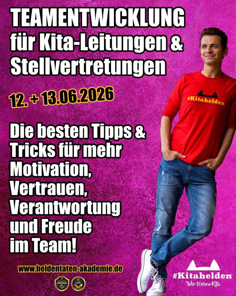 Unsere modulare Qualifikation für Kita-Leitungen, Fachberatungen, Kita-Manager/innen und Kita-Visionäre ist die neuste Superkraft der Heldentaten Akademie und des #Kitahelden-Universums.