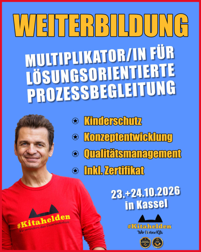 Du bist Kita-Fachkraft und suchst nach einer Möglichkeit, etwas zu bewirken, Veränderungen anzustoßen oder die Qualität in deiner Kita zu verbessern? Großartig! Mit unserer Qualifizierung zur zertifizierten Multiplikatorin für lösungsorientierte Prozessbegleitung in Kindertagesstätten kannst du Träume entstehen und wahr werden lassen.